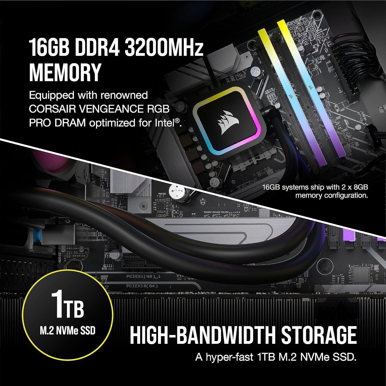 CORSAIR VENGEANCE RGB DDR5 Memory: High-performance memory, optimized for Intel and lined with stylish RGB LEDs.