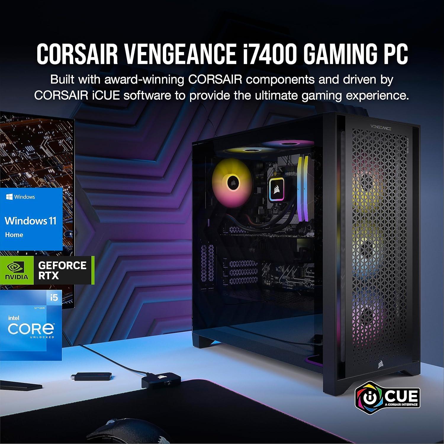 VENGEANCE PC – Powered by AMD: Built with a full range of award-winning CORSAIR components and driven by CORSAIR iCUE software for unparalleled customization and control, the VENGEANCE a7400 Series is powered by an AMD Ryzen 9000 CPU and cutting-edge NVIDIA GeForce RTX 40 Series graphics.