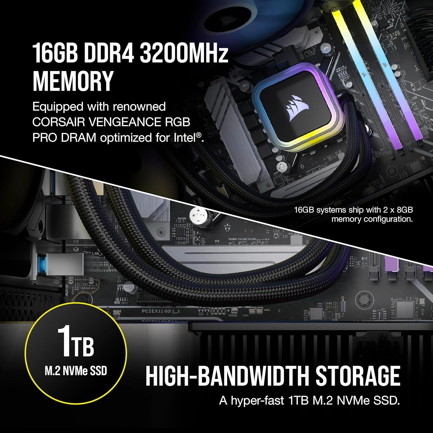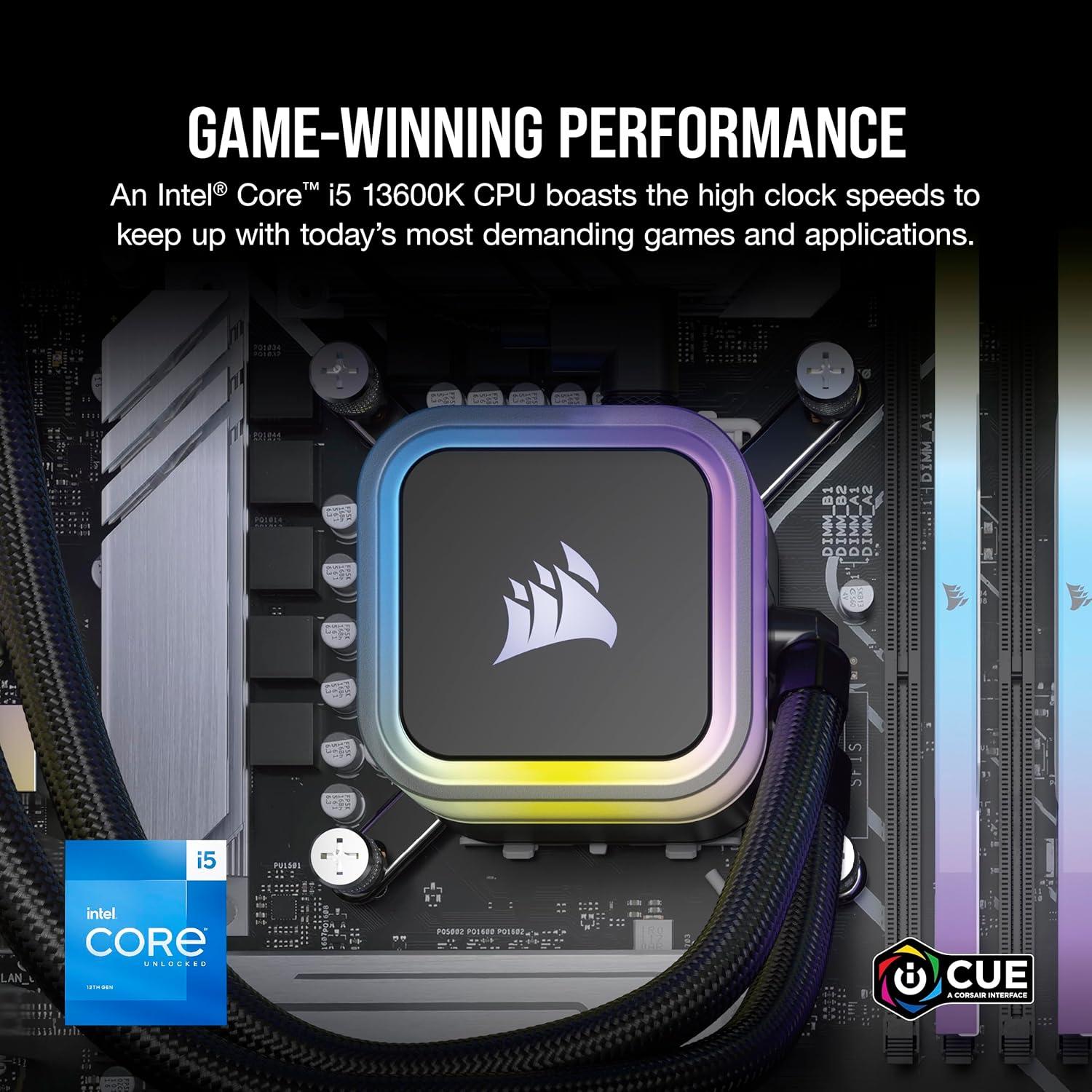 Corsair Vengeance a7400 Series Gaming PC – Liquid Cooled AMD Ryzen 5 9600X CPU – NVIDIA GeForce RTX 4060 GPU – 32GB Vengeance RGB DDR5 Memory – 1TB M.2 SSD – Black(i5 13600K / 4060Ti)