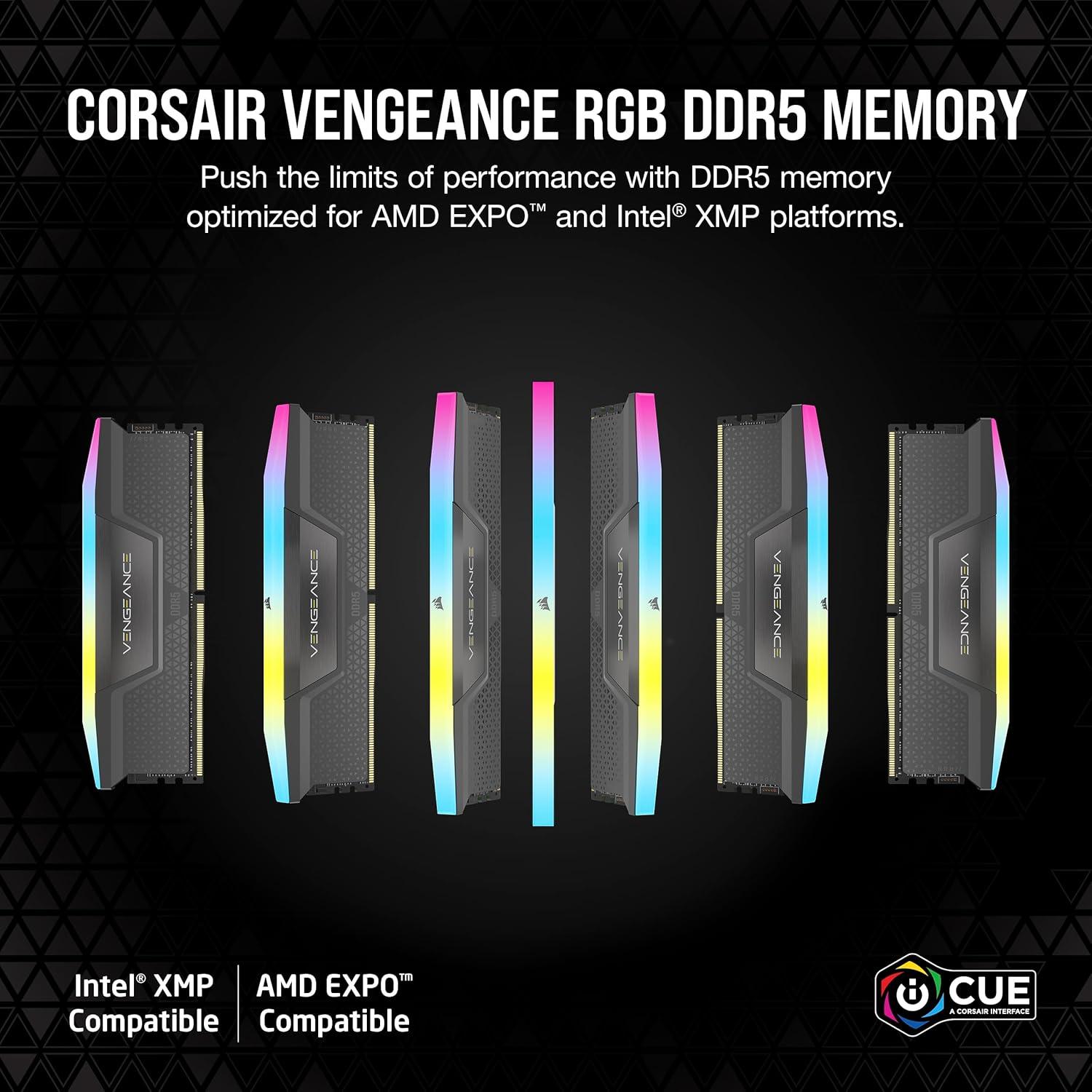 CORSAIR Vengeance RGB DDR5 RAM 32GB (2x16GB) 6400MHz CL36-48-48-104 1.35V AMD Expo Intel XMP 3.0 Desktop Computer Memory – Gray (CMH32GX5M2B6400Z36)
