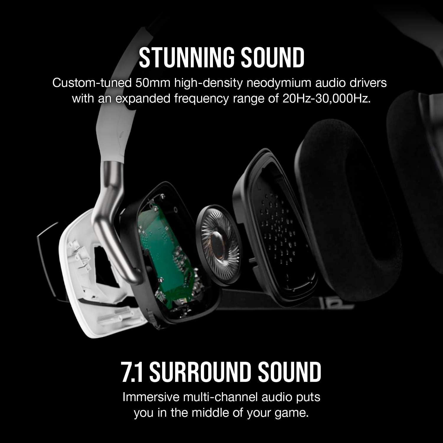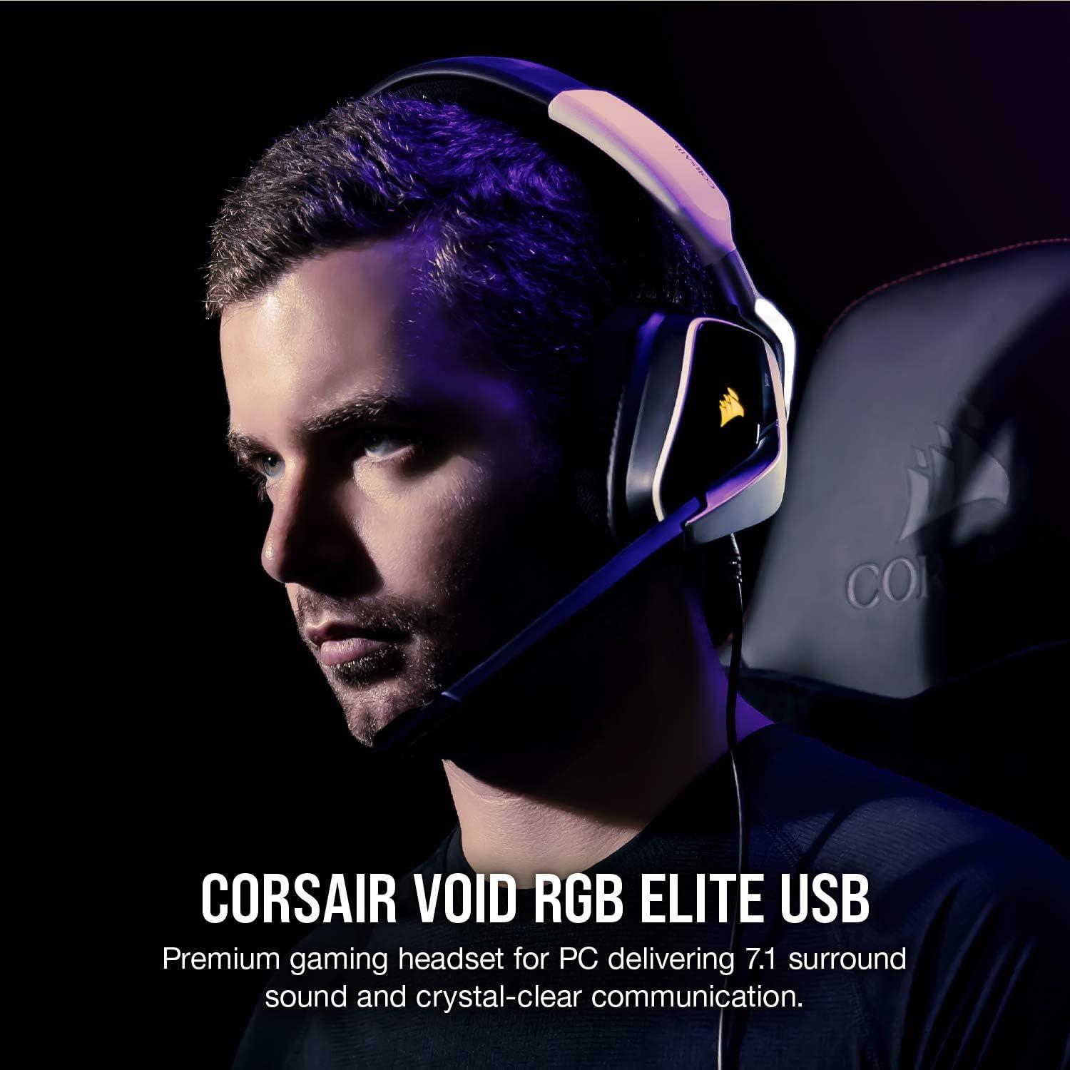 Corsair Void RGB Elite Wireless Gaming Headset – 7.1 Surround Sound – Omni-Directional Microphone – Microfiber Mesh Earpads – Up to 40ft Range – iCUE Compatible – PC, Mac, PS5, PS4 – White(White)