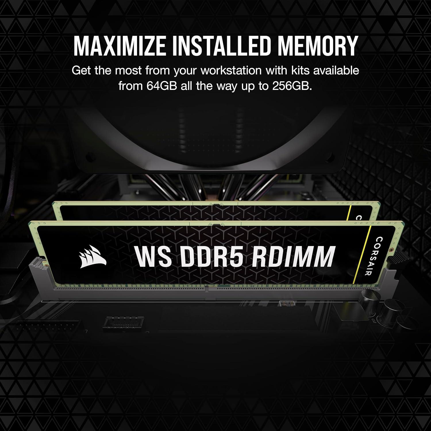 CORSAIR WS DDR5 ECC RDIMM 64GB (4x16GB) 5600MHz CL40 AMD Expo Intel XMP 3.0 Computer Memory – Black (CMA64GX5M4B5600Z40)(6000MHz)