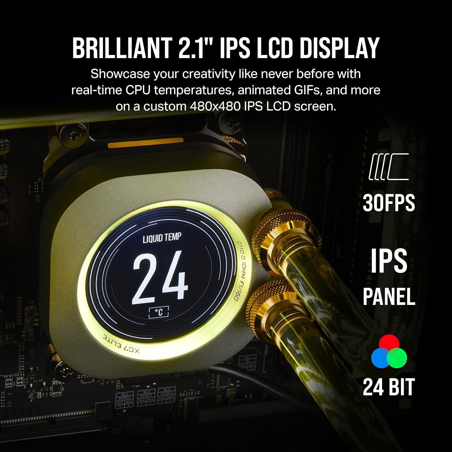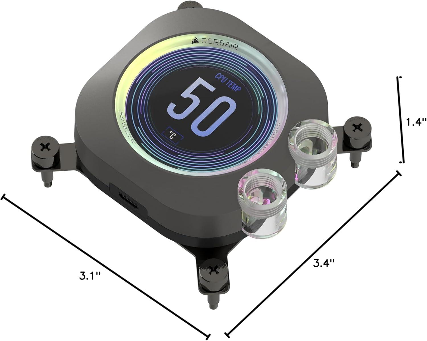 CORSAIR XC7 RGB Elite LCD CPU Water Block – 480×480 IPS LCD Screen – 31 RGB LEDs – USB-C – Fits Intel® LGA 1700, AMD® AM5 and Older – Stealth Gray